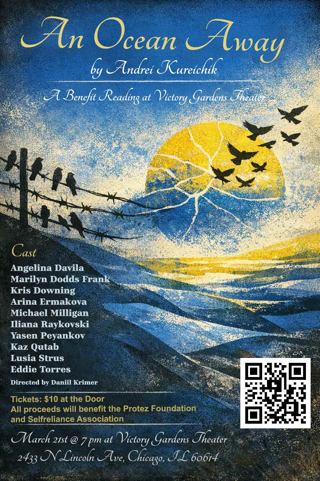 Join us at Victory Gardens Theater for a benefit reading of An Ocean Away by Belarusian playwright and screenwriter Andrei Kureichik, whose work has been produced internationally across both stage and screen.